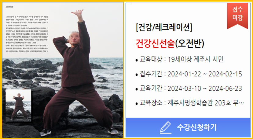 2. 제주 평생 학습원에서는 지난 가을 학기에 이어서 <기찬몸 기찬몸 건강 신선술> 2기를