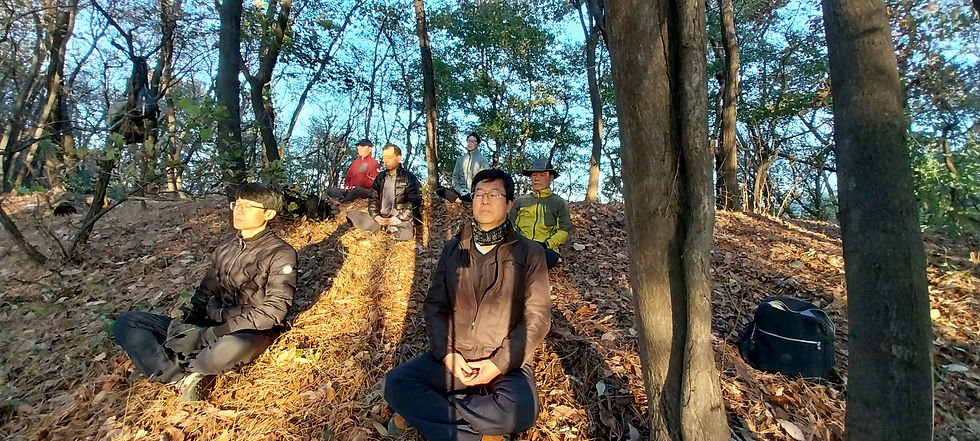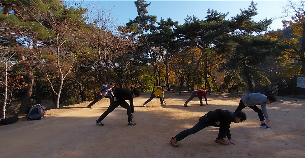 7. 깊어가는 가을 산에 다리 찢기도 시도해 보고, 10분 명상에도 잠겨보고