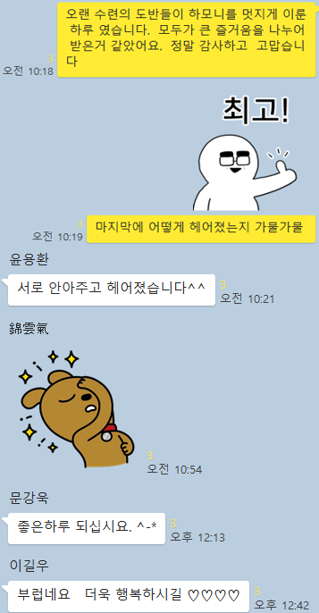 함께 수련 하며 동고 동락 했던 도반들 끼리 서로 응원하며 공감하는
