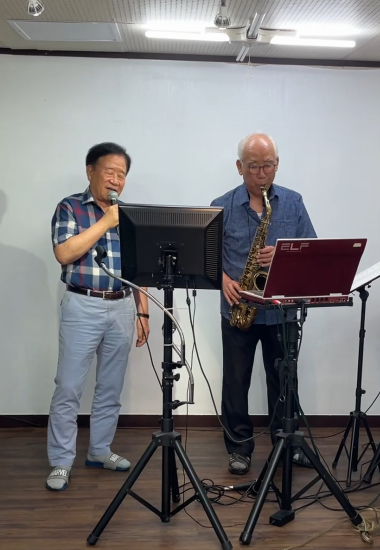 2) 권영길 회장님의 섹스폰 스튜디오 에서 신나는 연주와 팝송 열창.