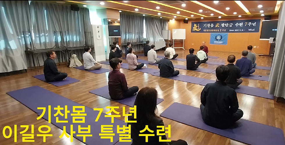 본격적인 1부 첫 순서로 먼저 그간의 수련 영상을 시청한 뒤, 이길우 회장님의 특별 수련 시간이 있었습니다.