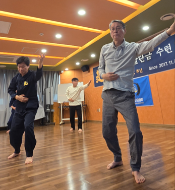 회장님의 구령에 따라 천천히 동작을 따라해 가며 수련을 이어갔는데 더디더라도 끝까지 놓치지 않고 따라하시는 모습이 인상적이었는데요!