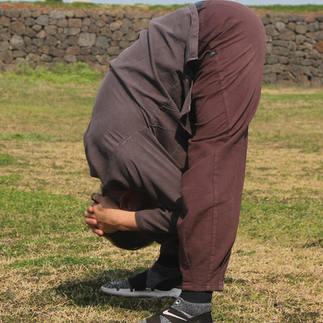 앉은 자세가 아니라 선 채로 상체를 앞으로 굽히는 동작은 초보자들에겐 부담스럽다. 허리의 힘으로 굽혔다가 폈다가 하려고 하기 때문이다. 허리에 힘을 준 상태에서 반복적으로 굽혔다가 펴는 동작을 하면 허리가 아파 오래할 수 없다. 허리에 힘을 빼고 몸을 놓아야 한다. 몸을 놓는다는 것은 다리(오금)를 편 채 상체를 숙여 그냥 늘여뜨리는 동작이다. 버드나무 가지처럼 흔들흔들, 낭창낭창 움직여야 한다. 이 동작을 하다보면 뒷꿈치-아킬레스건-종아리-허벅지-엉덩이-허리-등-목-머리까지 하나가 되어 팽팽해짐을 느끼게 된다. 오금에 신호가 빨리 온다. 평소 오금을 펴는 동작을 하지 않는 이들은 오금에 강한 전기자극이 오는 듯, 짜릿짜릿하다. 심하면 못 견딜 정도이다. 수축됐던 오금이 펴지기 위한 진통이다. 그런 아픔을 견뎌내면 오금이 시원해 진다.